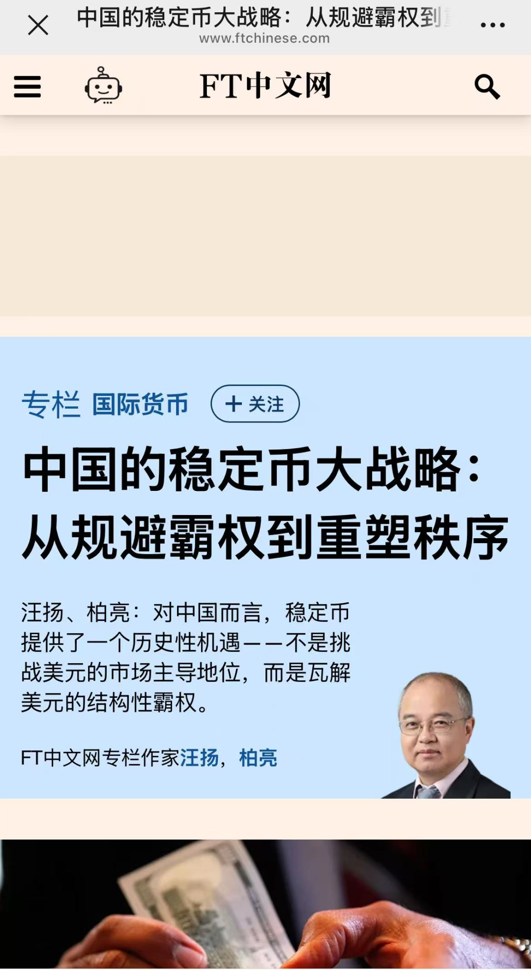汪扬、柏亮:对中国而言,稳定币提供了一个历史性机遇——不是挑战美元的市场主导地位,而是瓦解美元的结构性霸权。